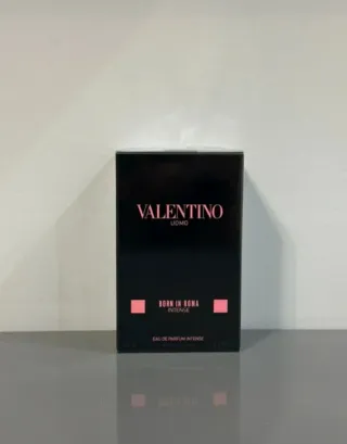 Perfume Valentino Uomo Born in Roma Intense Eau de Parfum. - Fragancia masculina. - Aroma intenso y cautivador. - Presentación elegante en frasco negro con detalles rosas.
