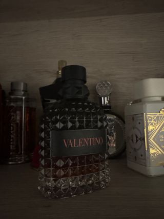 Este es el perfume Valentino Uomo Born in Roma. - Fragancia masculina. - Diseño de botella con tachuelas. - Aroma distintivo.