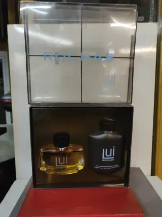 Set de fragancia Rochas Lui que incluye perfume y gel de ducha. - Frasco de perfume con líquido dorado.100 ml.vap - Envase de gel de ducha 200 ml.