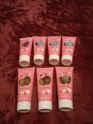 Set de 7 lociones corporales nuevas con aroma a fruta tropical. - Loción corporal perfumada. - Deja la piel suave y delicadamente perfumada. - Sensación de bienestar. - Contenido: 200 ml cada una. - Fabricado en Francia.
