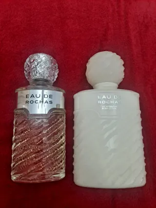 Set de fragancia Eau de Rochas que incluye perfume y loción corporal. - Botella de perfume con líquido verde220ml. - Loción corporal blanca 500ml.