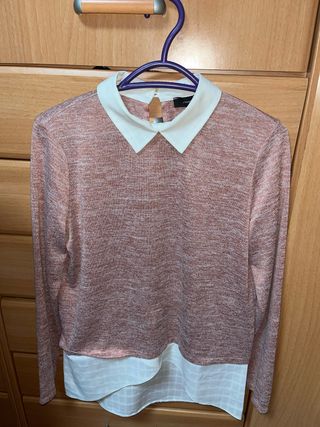 Jersey rosa con cuello blanco