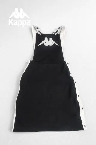 Vestido peto original Kappa talla XS en negro con detalles blancos y logo icónico en el pecho. ✨ Logo grande frontal ✨ Tirantes con print Kappa repetido ✨ Laterales con botones tipo snap ✨ Tejido elástico y cómodo (90% poliéster, 10% elastano) ✨ Ajuste súper favorecedor El vestido está en estado perfecto, sin manchas, sin roturas y sin desgaste. Conserva etiquetas interiores originales. Estilo sporty / athleisure muy actual 🔥 Ideal para combinar con sneakers o botas chunky.