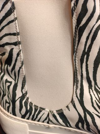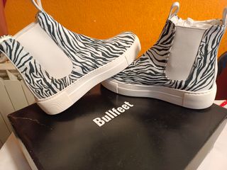 Las vendo por que no me vienen y perdi el ticket . Talla 41 Bota tipo chelsea con forro polar en su interior, fabricadas en tejido PET de cebra de plástico reciclado del mar. Los elásticos de los laterales son blancos y los tiradores y la tira trasera. Se fabrica en España . Precio negociable.