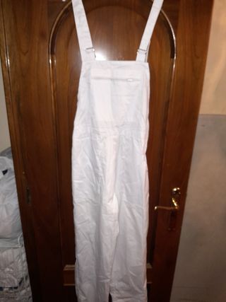 Peto de color blanco. -4 bolsillos - Tirantes ajustables con hebillas. - Bolsillo frontal en el pecho con cremallera - Diseño de pierna recta.