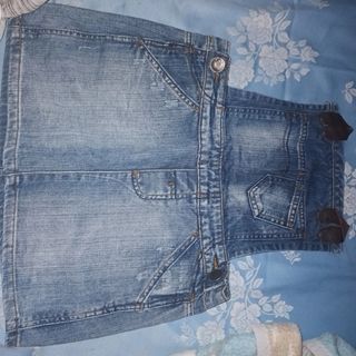 Faldas vaqueras para niñas, la talla pone de 9 a 10, pero da menos talla. 3€ cada una. El peto 5€, talla para 7-8 años.