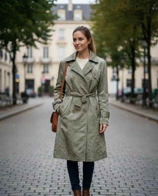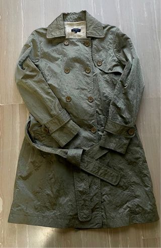 Trenca de la marca Peter Murray en un tono verde con acabado efecto arrugado tornasolado/iridiscente. Ideal para viajar por su ligereza, no necesita plancha y ocupa muy poco en la maleta, con un diseño clásico de doble botonadura y cinturón ajustable que estiliza la figura. • Estado: Impecable, muy poco uso. • Detalles: Forro interior satinado con estampado de logotipos, botones a contraste y puños con trabilla. • Material: Exterior de poliamida • Talla: L. Medidas aprox: largo 94 cm, largo manga 64 cm, axilas 48 cm y hombros 40 cm. PERCH/02/26 #TrenchCoat #PeterMurray #LuxuryFashion #gabardina #Outerwear #GreenCoat #ChicStyle