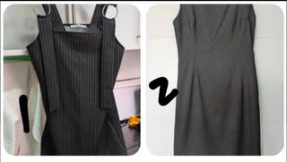 Vestidos a 4€ unidad. 1)Vestido de tirantes con un diseño de rayas verticales finas. Presenta detalles metálicos en los tirantes. - Diseño de rayas verticales. - Detalle de anillas metálicas en los tirantes. T-M,axila a axila 42 cm.largo 83cm. elástico. 2)Precioso vestido de la marca Mango, en color gris. Es un vestido elegante y sofisticado, ideal para cualquier ocasión. - Escote redondo con pedrería negra. - Corte entallado. - Sin mangas. - Cierre con cremallera invisible en la espalda.Vestido gris marengo con adornos perlas cuello T-M, axila a axila 45 cm.95 cm.largo.