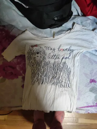 Camiseta blanca con un divertido estampado de un perro y el texto my lovely little pet. - Diseño con un perro de pelo largo. - Detalle de lazo rosa en la cabeza del perro. - Cuello redondo y manga corta.