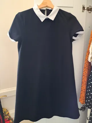 Vestido de Zara con cuello y puños blancos. - Diseño de manga corta. - Cuello Peter Pan. - Detalle en los puños.