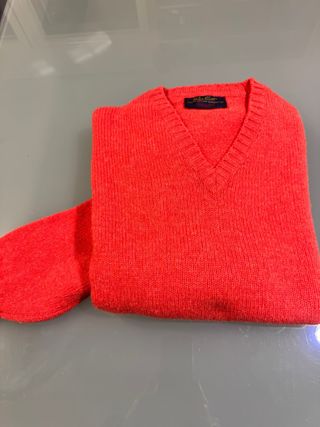 Jersey de pura lana virgen en un vibrante color coral. Ideal para añadir un toque de color a tu armario. - Manga larga. - Cuello en V. 55 cm espalda 59 cm ancho 66 cm largo