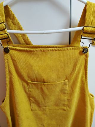 Peto de pana en color mostaza. Ideal para un look casual y cómodo. Pone XL pero diría que es más una L. - Tejido de pana. - Tirantes ajustables con hebillas. - Bolsillo frontal.