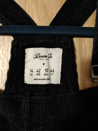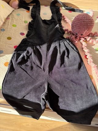 Peto de pana en color negro, talla 13/14 de la marca Coconut. Solo se ha usado un par de veces. - Tejido de pana. - Tirantes con volantes. - Lazos en los tirantes.