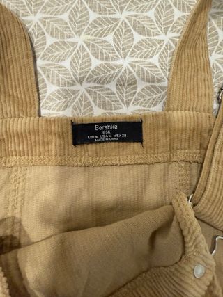 Peto de pana en color beige de Bershka. Es una prenda versátil y cómoda. - Tejido de pana. - Dos bolsillos delanteros. - Tirantes ajustables.