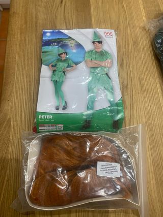 Disfraz de Peter Pan para niño o adulto. - Incluye gorro, camisa y pantalón. - Cinturón marrón. -Entrega en mano