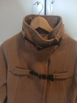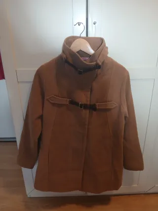 Abrigo de color marrón con forro interior. - Diseño elegante con cuello alto. - Cierre con botones decorativos. - Tiene Forro. - NUEVO, sin etiqueta.