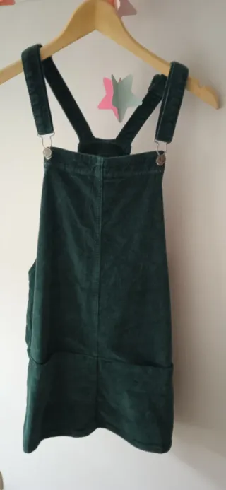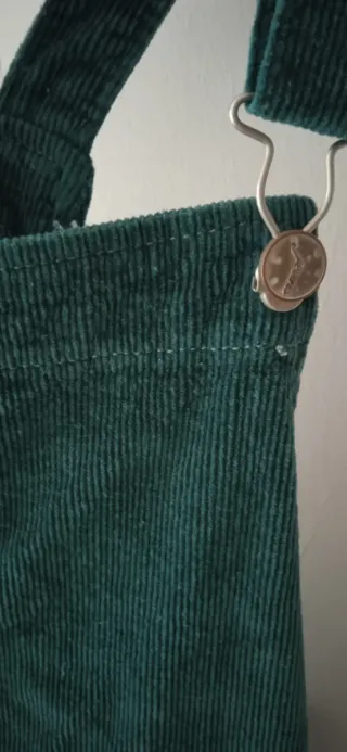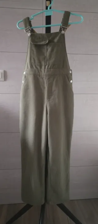 Peto de pana para mujer en color verde oliva. Es una prenda versátil y cómoda. - Tejido de pana acanalada. - Diseño tipo peto con tirantes. - Corte favorecedor... 2 bolsillos invisibles por delante, usado 2 veces...