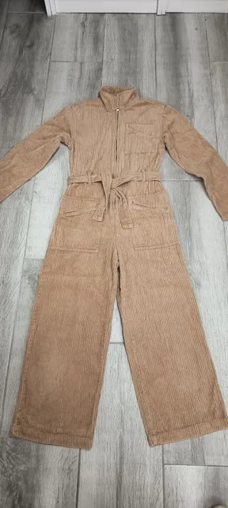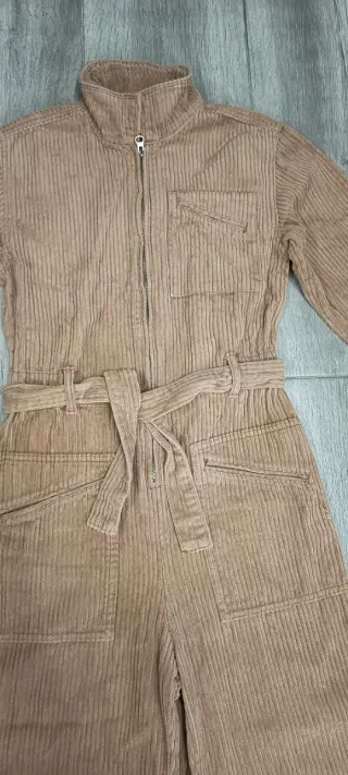 Peto de pana de color marrónbeige de zara para niña 13/14 años o adulta equivalente a una xa. Tiene un cinturón para ajustar a la cintura y bolsillos. - Cierre de cremallera. - Tejido de pana. - Cinturón a juego. Muy comodo