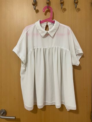 Blusa blanca de manga corta con cuello Peter Pan y cierre de boton detrás. Talla XS de mujer, pero equivaldría a una S. Tengo más blusas, si interesan puedo hacer pack.