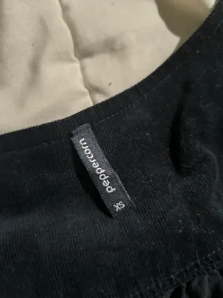 Peto de pana en color negro, talla M. Un básico versátil para tu armario. Amplio y muy cómodo. - Tejido de pana. - Bolsillos frontales.