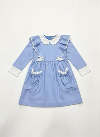Vestido mini babydoll en azul celeste con detalles en blanco. Estilo romántico. Muy favorecedor y cómodo Estado: Nuevo con etiqueta Talla: XS Largo: 78 cm. Hombro a hombro: 46 cm. Sisa a sisa: 41 cm • Cuello Peter Pan blanco • Mangas largas con puños blancos personalizados • Volantes en frontal y hombros • 2 bolsillos delanteros con fruncido • Corte evasé con cintura ligeramente fruncida • Cremallera invisible trasera • Forro interior azul • 100% algodón #nuevo #nuevoconetiqueta #vestido #sinestrenar #vestidobabydoll #vestidoazul #azulceleste #tallaxs #algodon #romantico