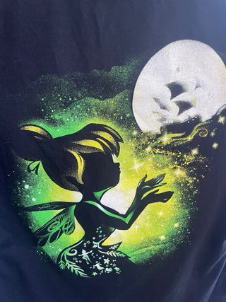 Camiseta de manga corta con estampado inspirado en Campanilla de Peter Pan. Medidas aproximadas: 62 cm de largo y 48 cm de ancho de sisa a sisa.