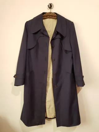 💦 tejido 100% poliester 💦 color azul marino con forro impermeable 💦 corte evasé con cuello peter pan *no conserva el cinturón Medidas: hombros 42cm, pecho 44cm, cintura 47cm, largo 101cm vintage sesentero mod yeyé guateque abrigo chaqueta básico clásico it-girl girlandkitten