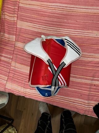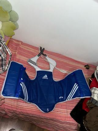 Peto protector de Taekwondo Adidas reversible. - Diseño acolchado para mayor protección. - Cierre con velcro y tiras ajustables. - Reversible para adaptarse a diferentes competiciones.