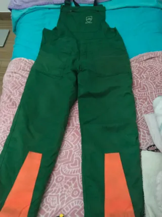 Pantalón peto anti corte con tirantes,verde y nara