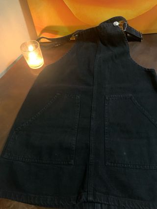 Peto vaquero con un estilo desgastado y moderno. Prácticamente nuevo. Vale disfraz de Chucky . - Diseño con rotos en las rodillas. - Bolsillo frontal tipo canguro. - Tirantes ajustables con hebillas.
