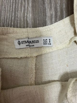 Peto de Stradivarius en color beige. - Diseño moderno y versátil. - Tejido cómodo y ligero. - El tirante izquierdo está un poco desgarrado