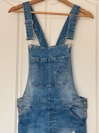 Mono vaquero. Tiene bolsillos y una cremallera lateral.