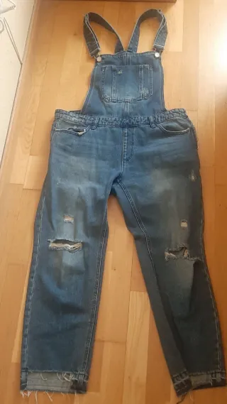 Peto vaquero de estilo desgastado. - Tirantes ajustables. - Bolsillos delanteros y traseros. - Diseño con rotos y efecto desgastado. Precioso y muy comodo cómodomuy nuevo