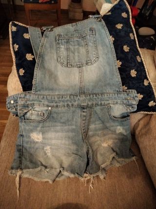 Peto vaquero corto de Stradivarius, talla XL (42/14), sin estrenar. - Diseño clásico con tirantes. - Color azul. - En perfecto estado.