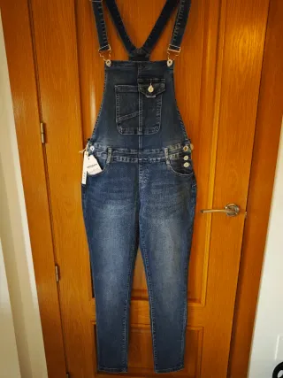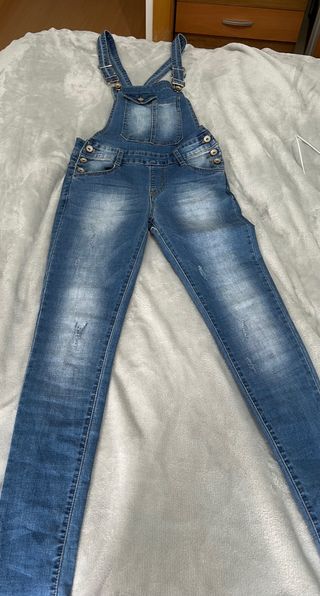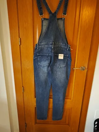 Peto/mono vaquero denim. Tirantes y cintura ajustables. Bolsillos delanteros y traseros Podría servir para embarazada