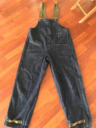 Peto vaquero para niño, en color azul. Está en buen estado. - Diseño clásico de peto. - Ajustable con tirantes. - Bolsillos funcionales. - Talla 9 (134 cm)