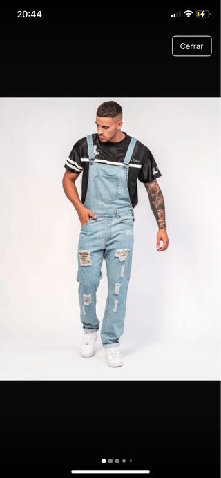 Peto vaquero para hombre con un diseño moderno y desgastado. 2 en 1, puedes quitar la parte superior y hacerlo pantalón vaquero. - Tirantes ajustables con detalles en cuero.( los detalles están un poco cuarteados, como se aprecia en la foto) - Cremallera frontal. - Bolsillos delanteros y traseros. - Pierna recta.