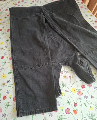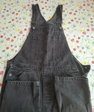 Pantalón peto vaquero de color negro. - Talla M/L (equivalente a 38-40 o 48-50). - Diseño con tirantes ajustables.