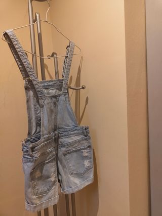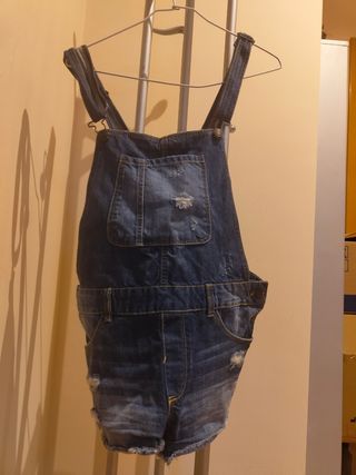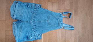 Peto tipo vaquero de pantalon corto de tela fresquita Con botones y bolsillos No tiene etiqueta pero esta sin uso