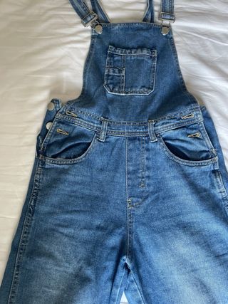 Peto vaquero de pantalon corto con botones en la parte delantera como se puede ver en las imágenes. Talla M. Zara