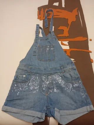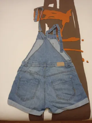 Precioso peto vaquero corto, ideal para el verano. - Diseño de peto. - Cierre de botones en laterales, los de alante son de adorno y no se abren. - Tejido denim ligero. - Acabados deshilachados. - Tengo 1 en talla 34 y otro en talla 38