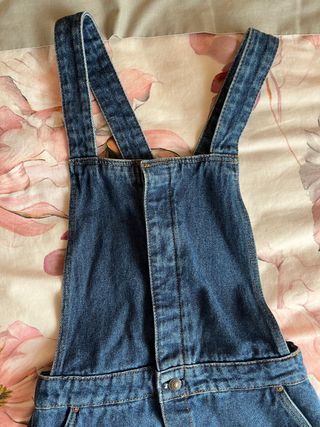 Peto corto vaquero de Zara, talla XS (equivalente a 34 o 6). Está en muy buen estado. - Diseño clásico. - Cierre con botones metálicos. - Bolsillos funcionales.