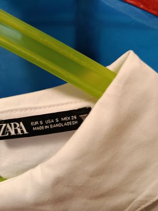 Camiseta blanca de Zara con cuello Peter Pan. - Manga corta. - Cierre en la espalda con botón. - Tejido suave y cómodo.