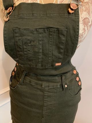 Peto vaquero diseñado para premamá. Cómodo y práctico para el día a día. - Tejido vaquero. - Tirantes ajustables. - Cintura elástica.