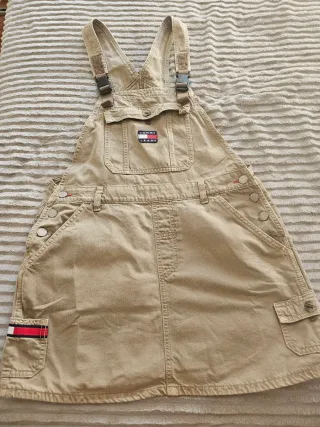 Pichi de la marca Tommy Hilfiger en color beige. Un básico para cualquier armario. - Diseño tipo peto con tirantes ajustables. - Bolsillo frontal con el logo de la marca. - Bolsillos laterales. - Detalle de bandera Tommy en bolsillo lateral.