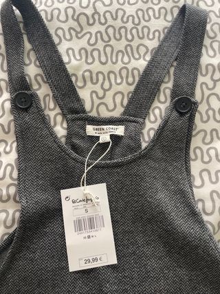 Usado un par de veces. - Es un peto corto falda. - Tiene tirantes. - Presenta bolsillos delanteros.