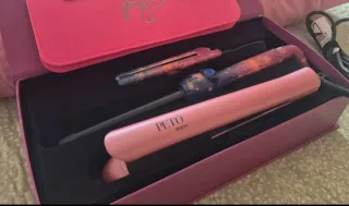 Set de herramientas para el cabello con un diseño único. - Plancha de pelo. - Rizador de pelo. - Mini plancha.
