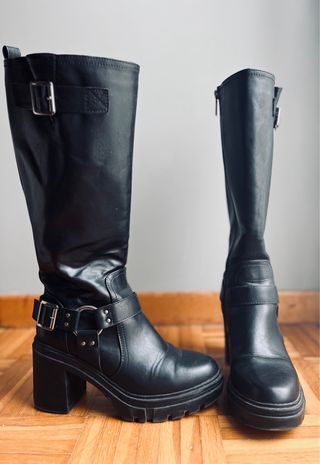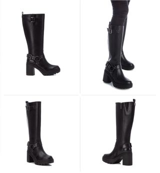 Bota de mujer, de la marca Refresh. Fabricado en un material que imita la piel. Cierre lateral mediante cremallera. Tirador trasero para facilitar su puesta. Correas con hebillas decorativas. 33 cm de caña. Tacón de 10 cm con gruesa plataforma para mayor comodidad. Modelo en tendencia este invierno. Este modelo ha obtenido el certificado vegano por la organización mundial PETA (Organización de los derechos de los animales). - Cierre de cremallera lateral. - Detalle de hebilla y anilla metálica. - Suela gruesa con plataforma y tacón. - Caña alta hasta la rodilla.
