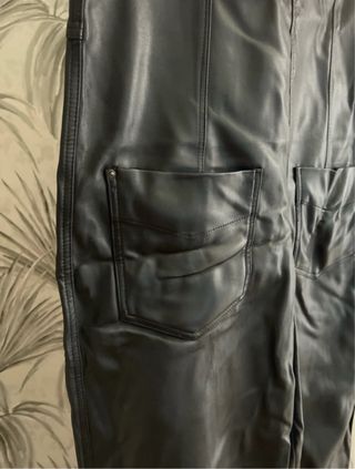 Peto negro de polipiel de Zara. Está en muy buen estado. - Diseño de peto con tirantes. - Bolsillos funcionales en la parte delantera y trasera - Corte recto.