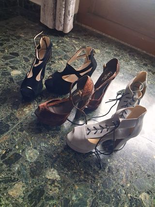 Sandalias de tacón alto negras,grises y doradas